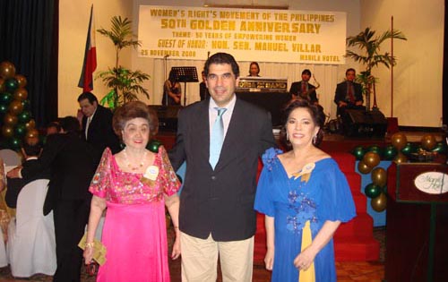 | Dr. I. Lyras with the President of the Womans' Rights Movement and the Governor of the Philippino National Red Cross, Mrs Leondia Ortiz. 2008 |