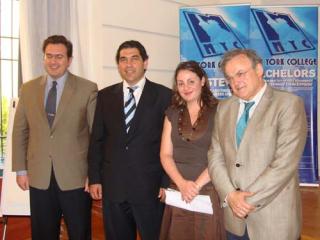| Dr. I. Lyras with Mr. Alexis Matheou, Mrs.Christine Mcguire and President of .New York College Mr. Ilias Foutsis . 2008 |